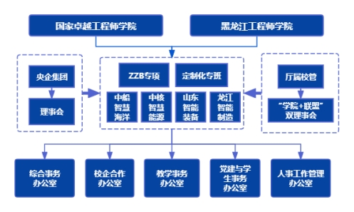 学校根据国家卓越工程师学院建设要求、兼顾黑龙江工程师学院批复要求,整合优势学科、通用学科优质资源,一体化、全配置、同班子统筹推进“学院”建设。